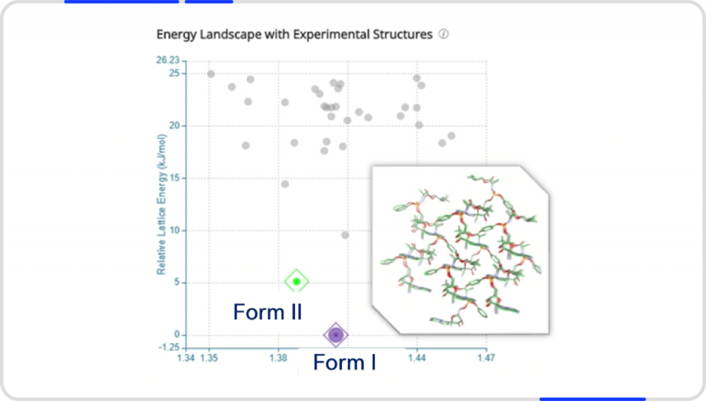 研發人員首先針對該化合物進行晶型預測(CSP),計算結果顯示目標晶型 Form I 比雜質晶型 Form II 能量更低,Form I 為最穩定的晶型。