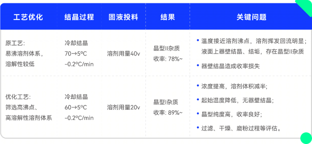 1.?目標晶型晶種控制+過飽和度控制(緩慢降溫/滴加反溶劑)