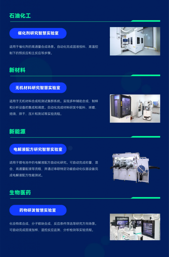 晶泰科技的實(shí)驗(yàn)室智能化自動(dòng)化解決方案,應(yīng)用于石油化工、新能源、新材料、生物醫(yī)藥等行業(yè)。我們提供的自動(dòng)化產(chǎn)品與服務(wù)包含:智慧實(shí)驗(yàn)室一站式建設(shè)服務(wù)、機(jī)器人工作站等,已為客戶落地構(gòu)建了藥物研發(fā)智慧實(shí)驗(yàn)室、催化劑研究智慧實(shí)驗(yàn)室、無機(jī)材料研究智慧實(shí)驗(yàn)室以及電解液配方研究智慧實(shí)驗(yàn)室等,特定自動(dòng)化應(yīng)用場(chǎng)景的機(jī)器人工作站包含 XmartChem??智能合成工作站、XtalComplete??智能結(jié)晶工作站、ChemPlus??桌面型固體加樣儀。